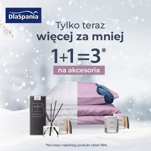 Kup dwa akcesoria, a trzeci (najtańszy) otrzymasz z rabatem 99%. Tylko w styczniu w salonach DlaSpania— idealna okazja, by uzupełnić sypialnię w nowym roku. 🎁